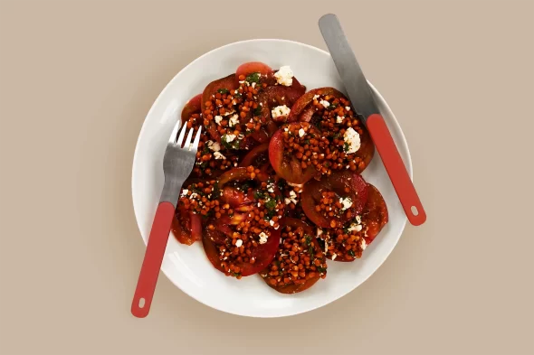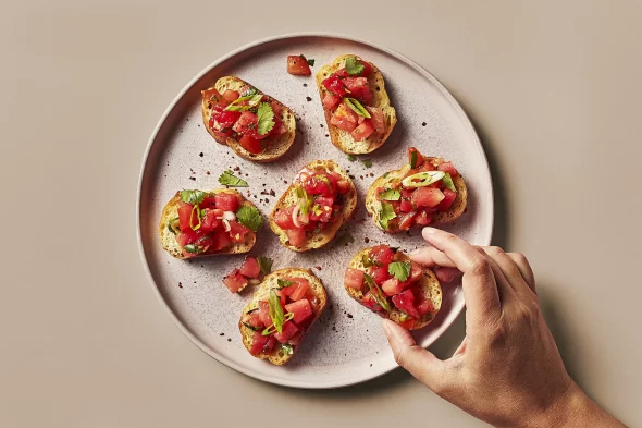 Tomato, Prosciutto & Almond Cream with Onion Confit Tart