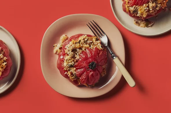 Bruschetta de tomate originelle, melon d’eau et coriandre