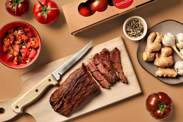 Carpaccio de steak grillé & garniture de tomates au sésame